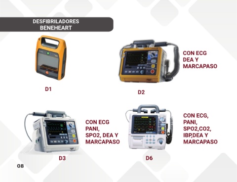 DESFIBRILADORES BENEHEART CON ECG DEA Y MARCAPASO D1 D2 CON ECG, CON ECG PANI, PANI, SPO2,CO2, SPO2, DEA Y IBP,DEA Y MARCAPASO MARCAPASO D3 D6 08